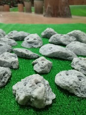 山中の小川にあった石から型取りして作製しました。