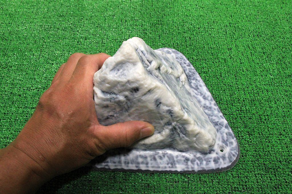 質感:河原で磨かれたチャートでツルツルの触感ですが、チョークが馴染んでくると持てるようになります。三角錐形状をしており各面でそれぞれ形状や傾斜が異なるので向きによって保持感を変えることが可能です。
