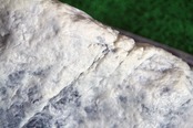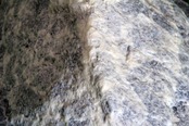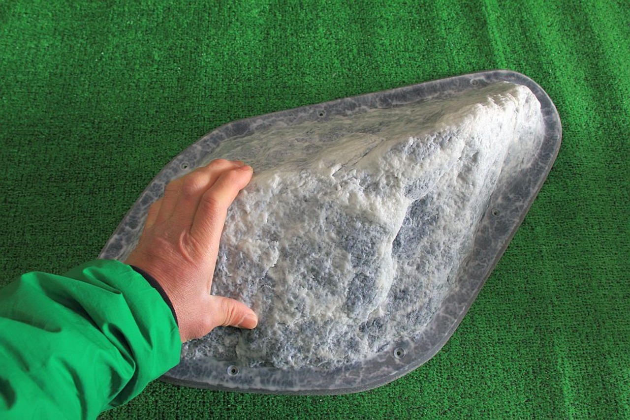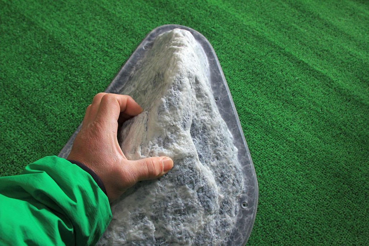質感:河原の花崗岩で全体的にややツルツルした触感ですが、欠けてできたエッジや細いクラック部分を保持できます。傾斜が立った部分はラップ持ちも可能です。これらの部分が持てない向きではスラブでも苦戦するホールドです。