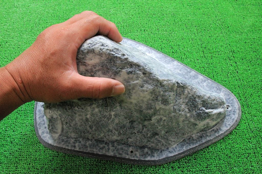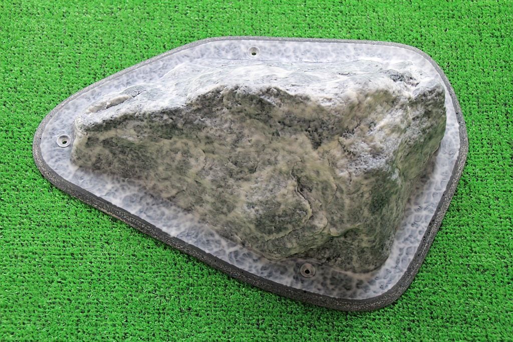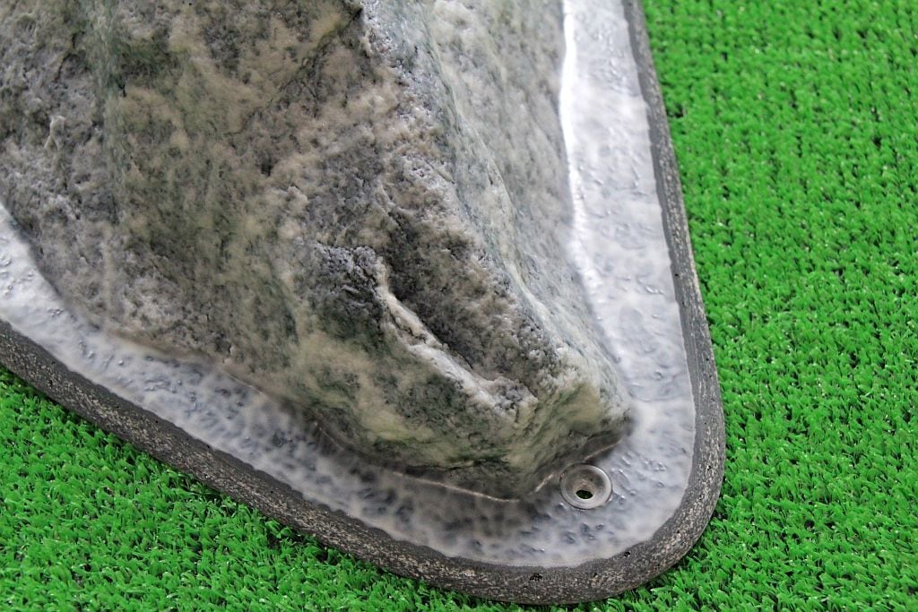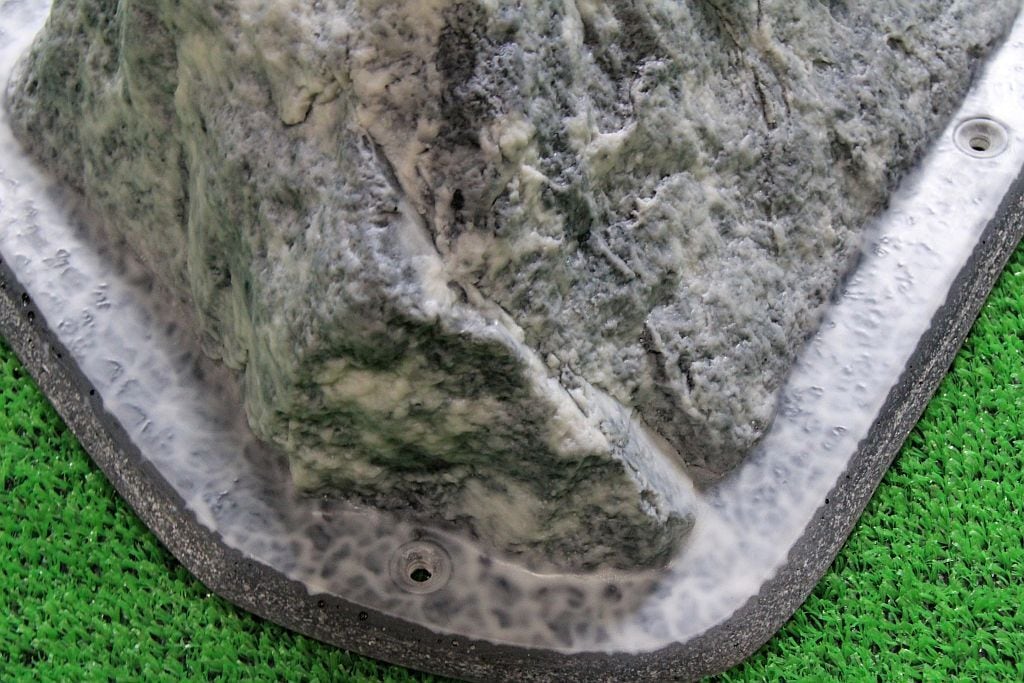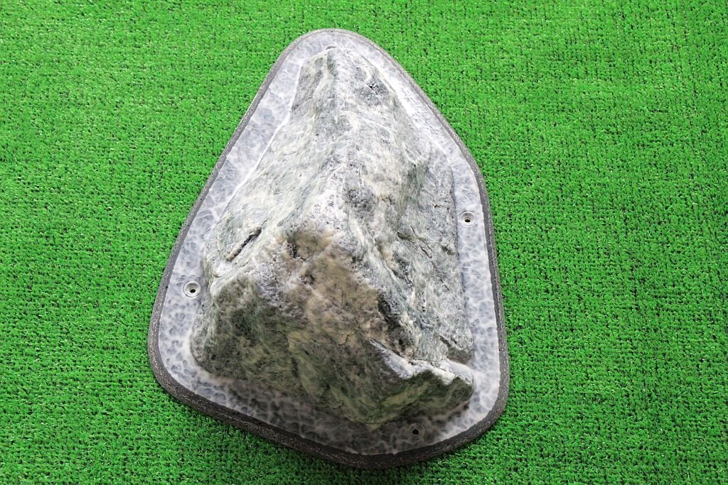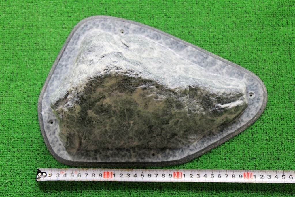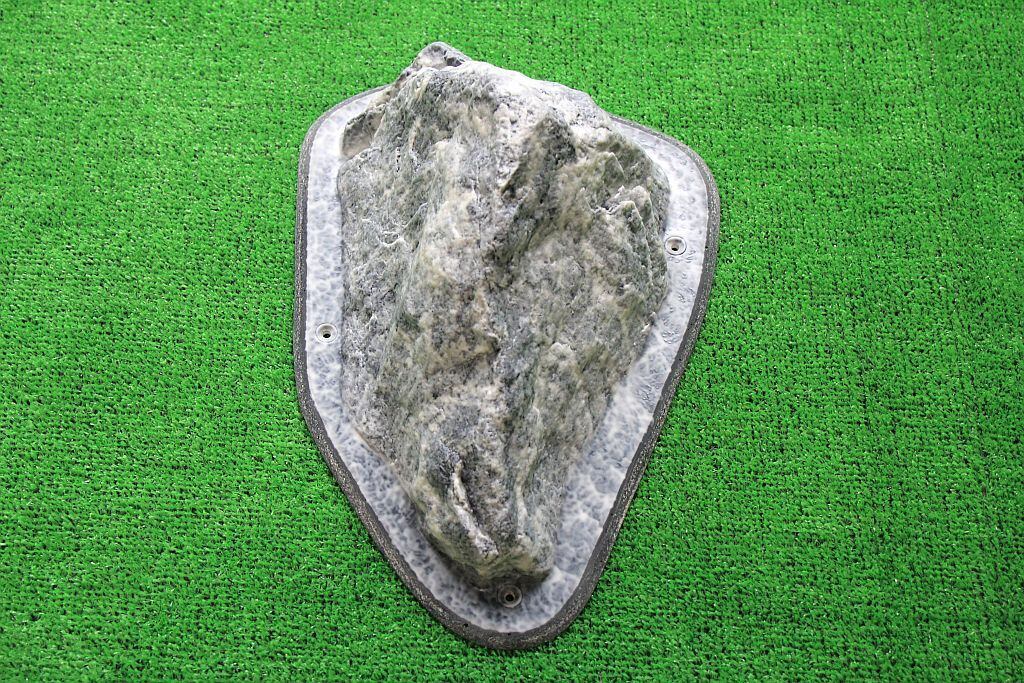 河原の花崗岩で作られたこのGR-23は、つるつるとした滑らかな触感が特徴です。一つの頂点が欠けた三角錐の形状をしており、欠けた部分や面内にあるカチ、持てる凹凸を探って持つようなホールドです。