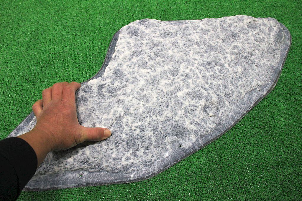 山の花崗岩で作られたこのGR-25は、全体的にざらざらとした触感が特徴です。外周半分には、2〜3.5㎝のほぼ垂直なエッジが連続しており、エッジの端部は少し丸まっているため、指の掛かりはやや限定されますが、痛みを感じることは少ないでしょう。